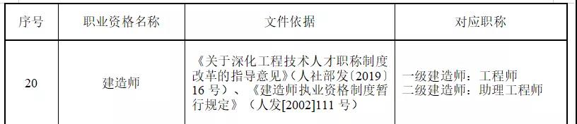 通过全国统一考试,取得《目录》表一所列27项职业资格考试合格证书的专业技术人才,其职业资格直接对应相应系列和层级的职称。