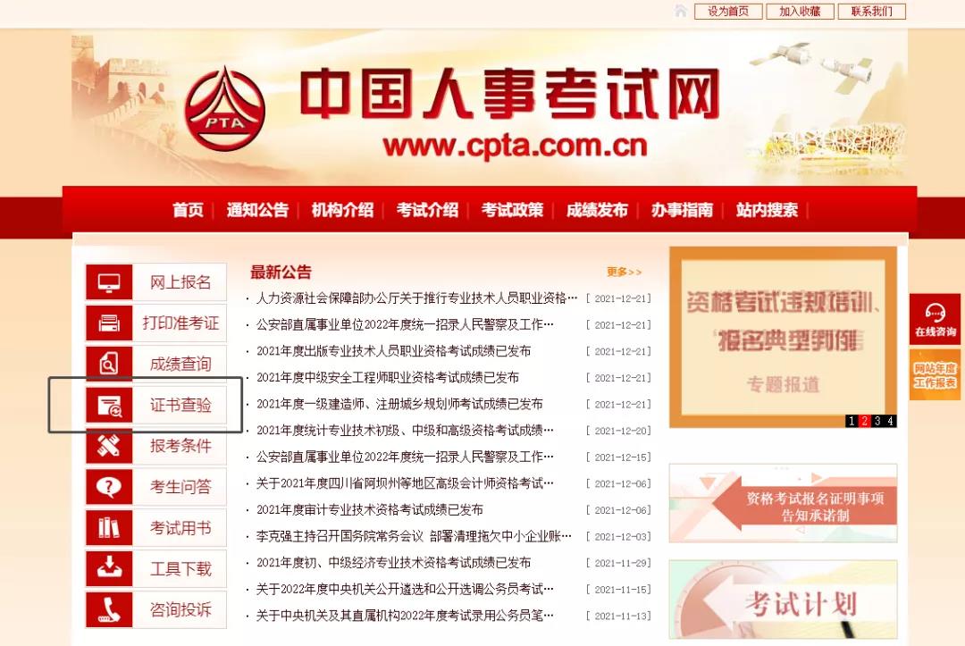 以上专业技术人员职业资格电子证书可在中国人事考试网(网址:www.cpta.com.cn)进行下载和查询验证,与纸质证书具有同等法律效力。推行电子证书后,纸质证书仍按照原方式制发。已制发的纸质证书遗失、损毁,或者逾期不领取的,不再办理补发