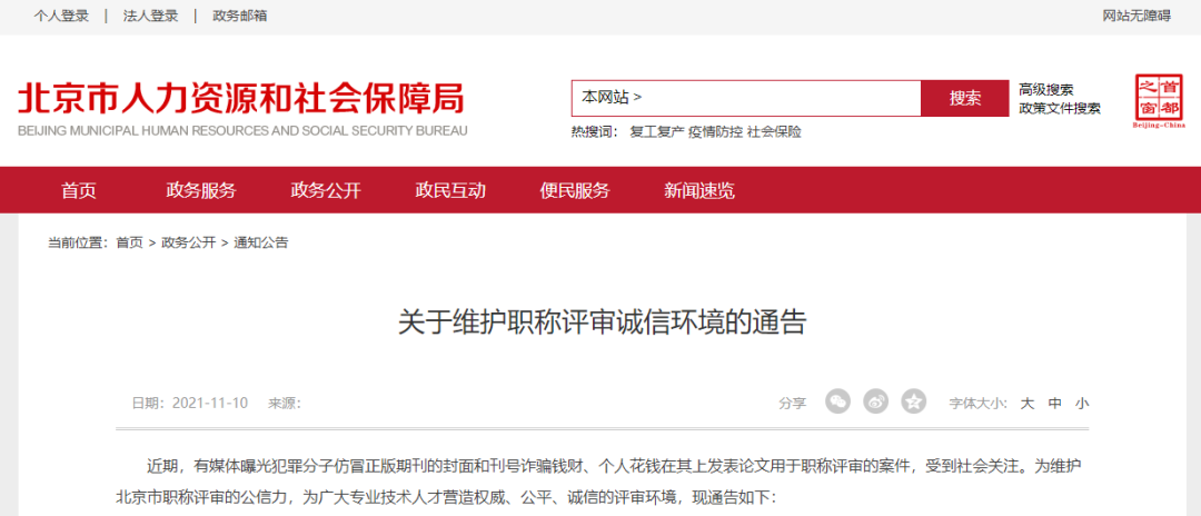 这不针对这一现象,北京市人社局就发布一则通知,有关维护职称评审诚信环境的,这样的举措也是极好的,让那个假冒伪劣产品无所遁形
