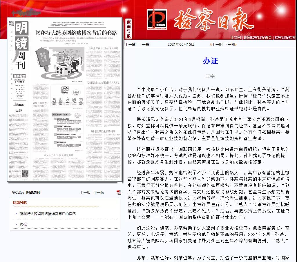 事件是刊登在《检察日报》,这是国家最高检主办的。