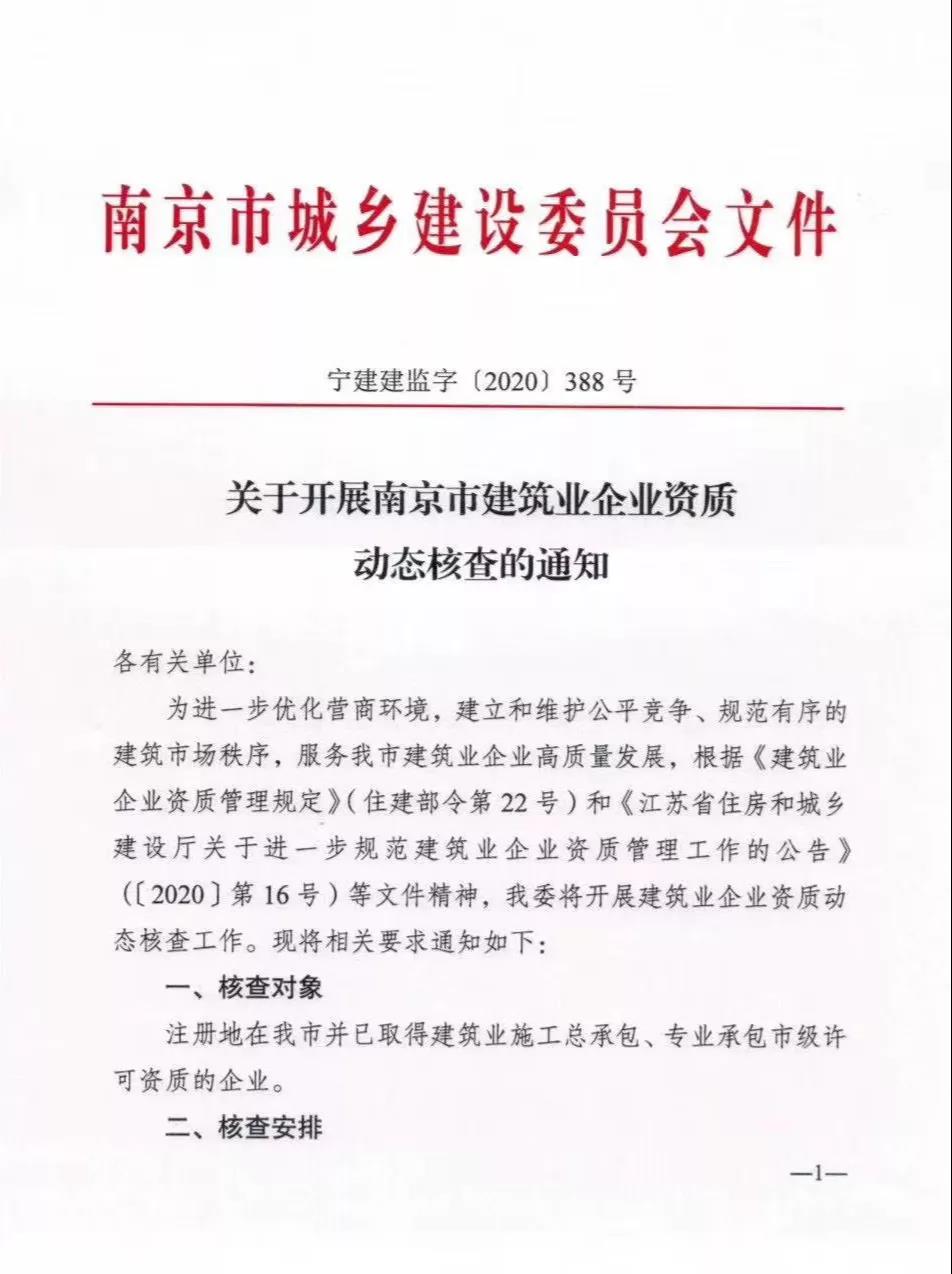 关于开展南京市建筑业企业资质动态核查的通知