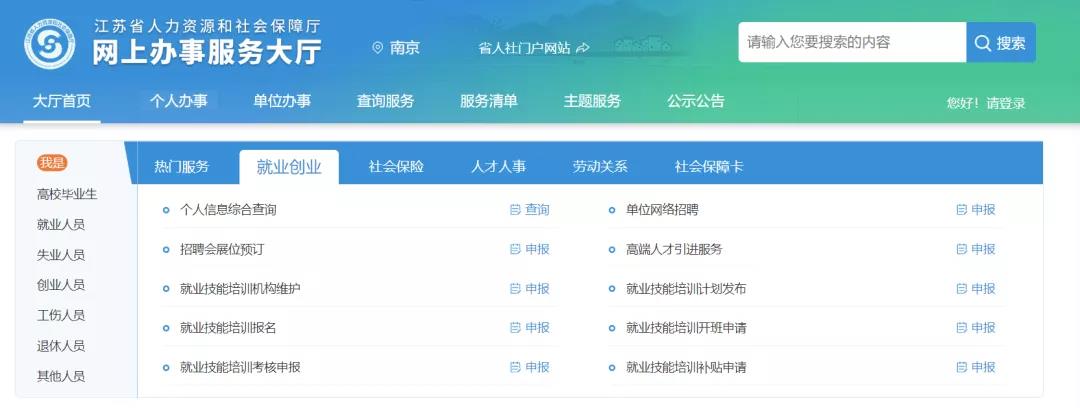 申报人登录江苏省人力资源和社会保障厅网上办事服务大厅